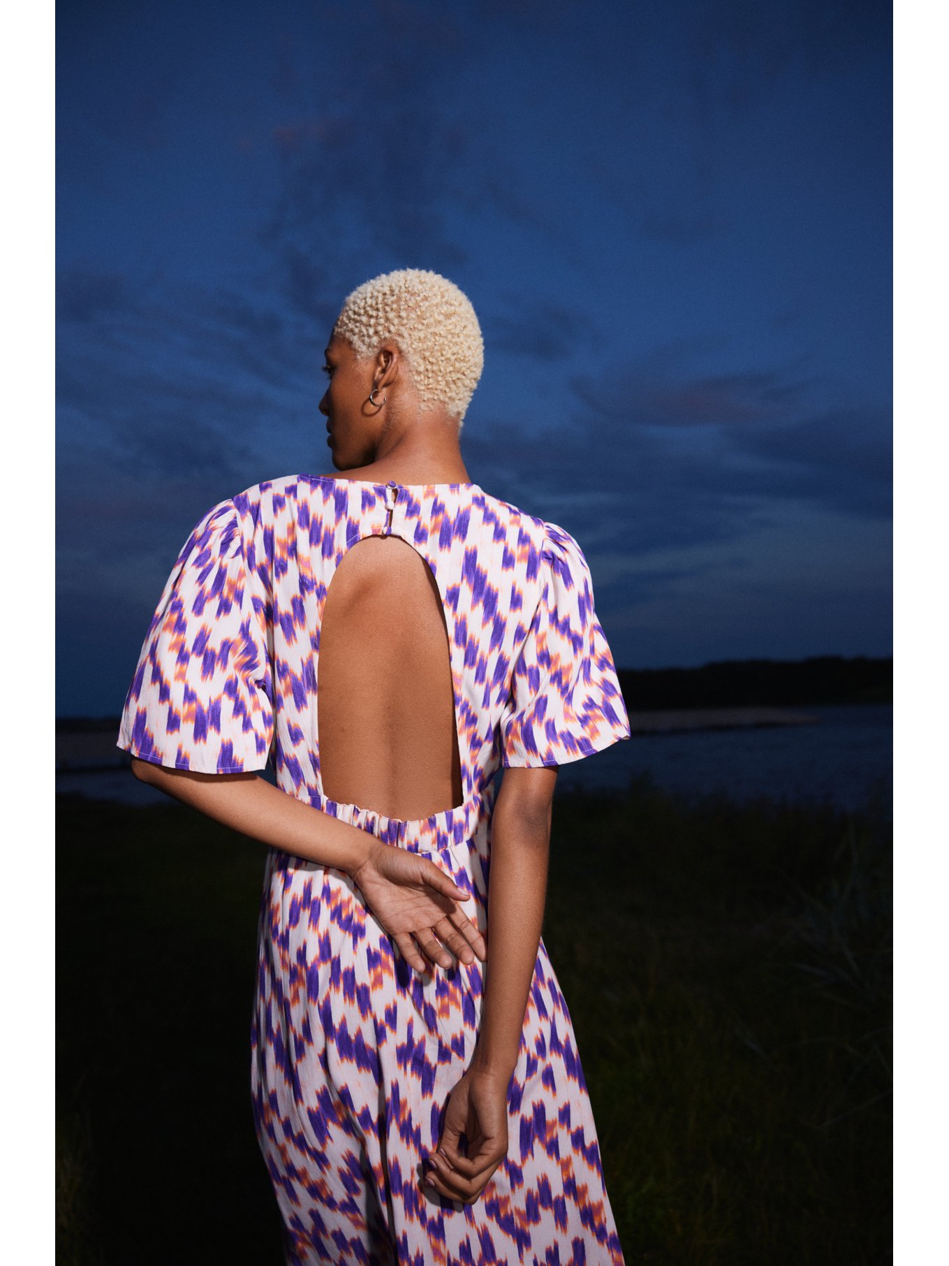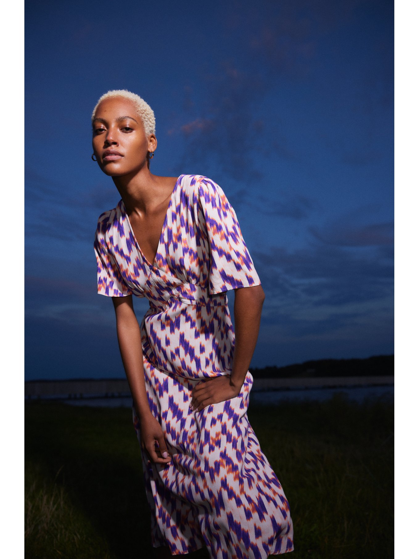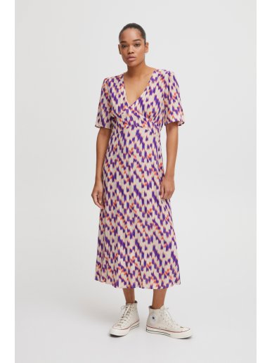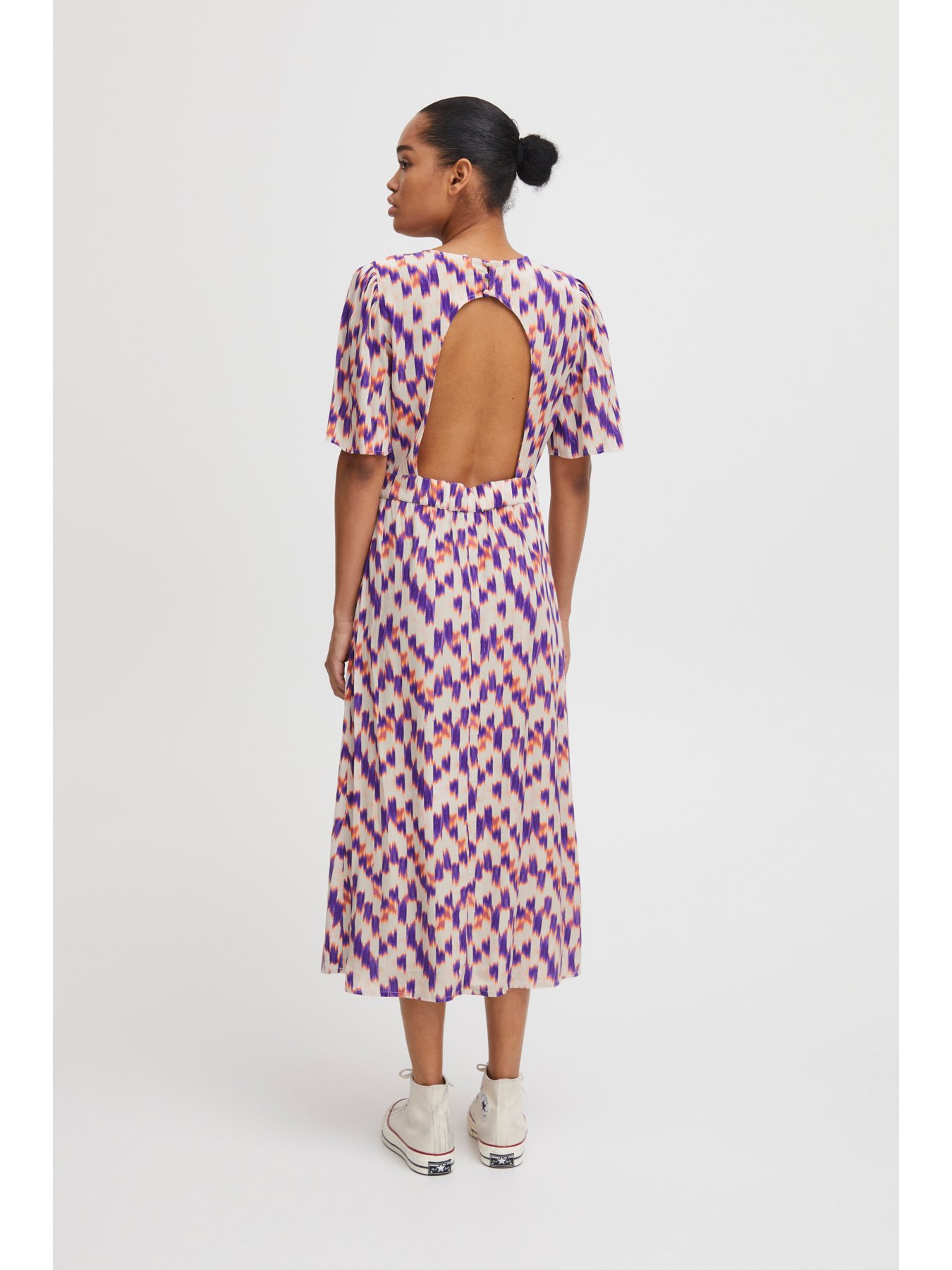 Deep blue Meldoy Midi Φόρεμα Ichi. V λαιμόκοψη, κοντά μανίκια. Ανοιχτή πλάτη με λάστιχο πίσω στην μέση.  Σύνθεση:  51% Viscose (LENZING™ ECOVERO™), 49% Viscose