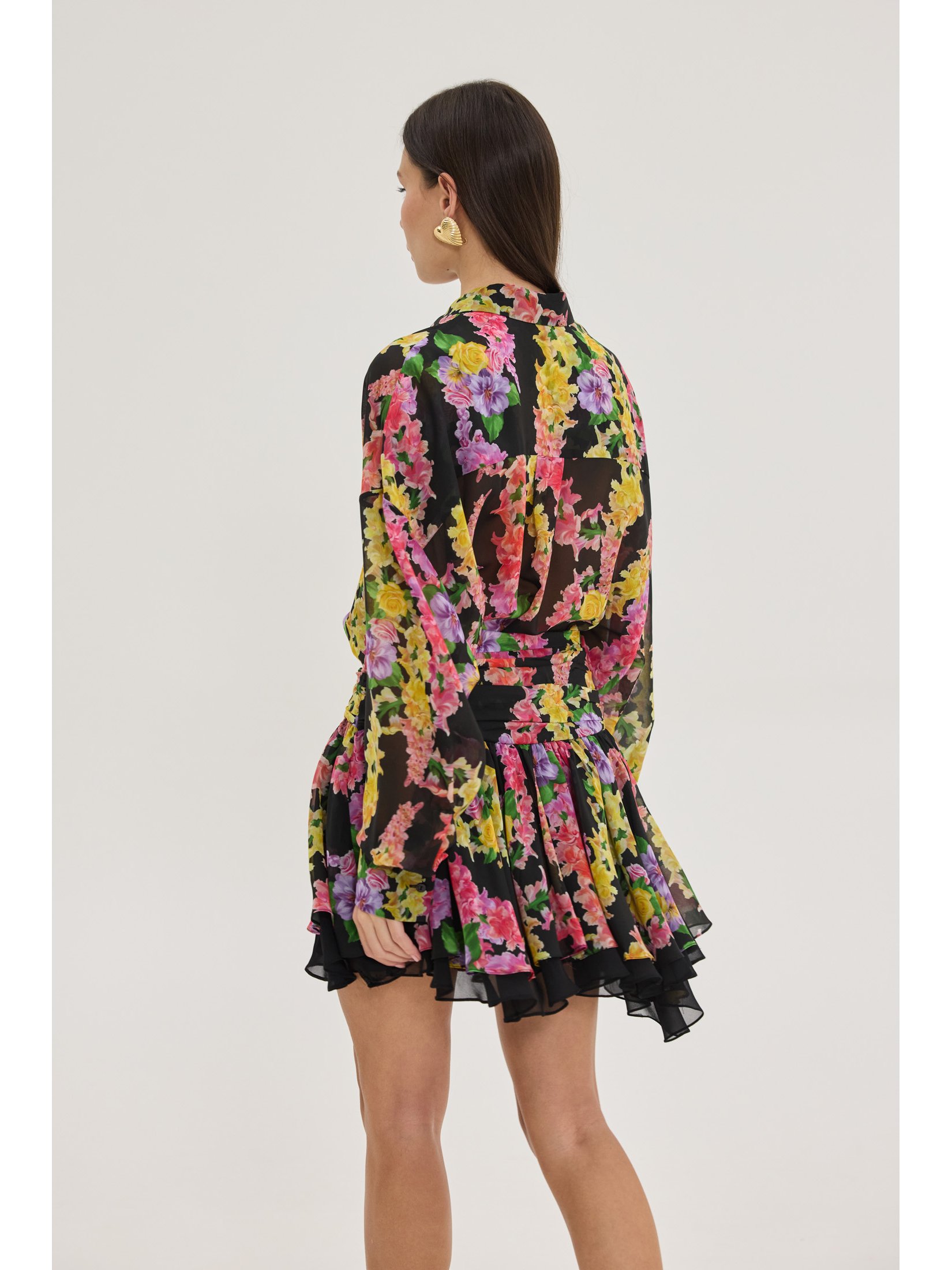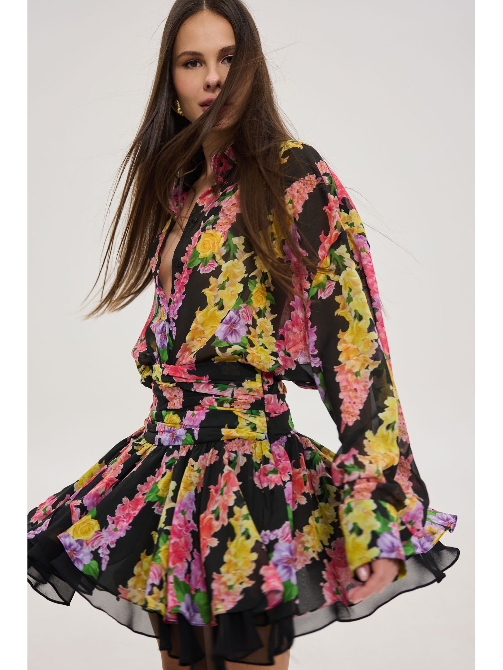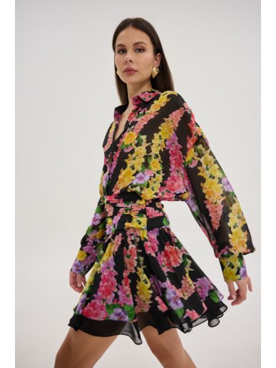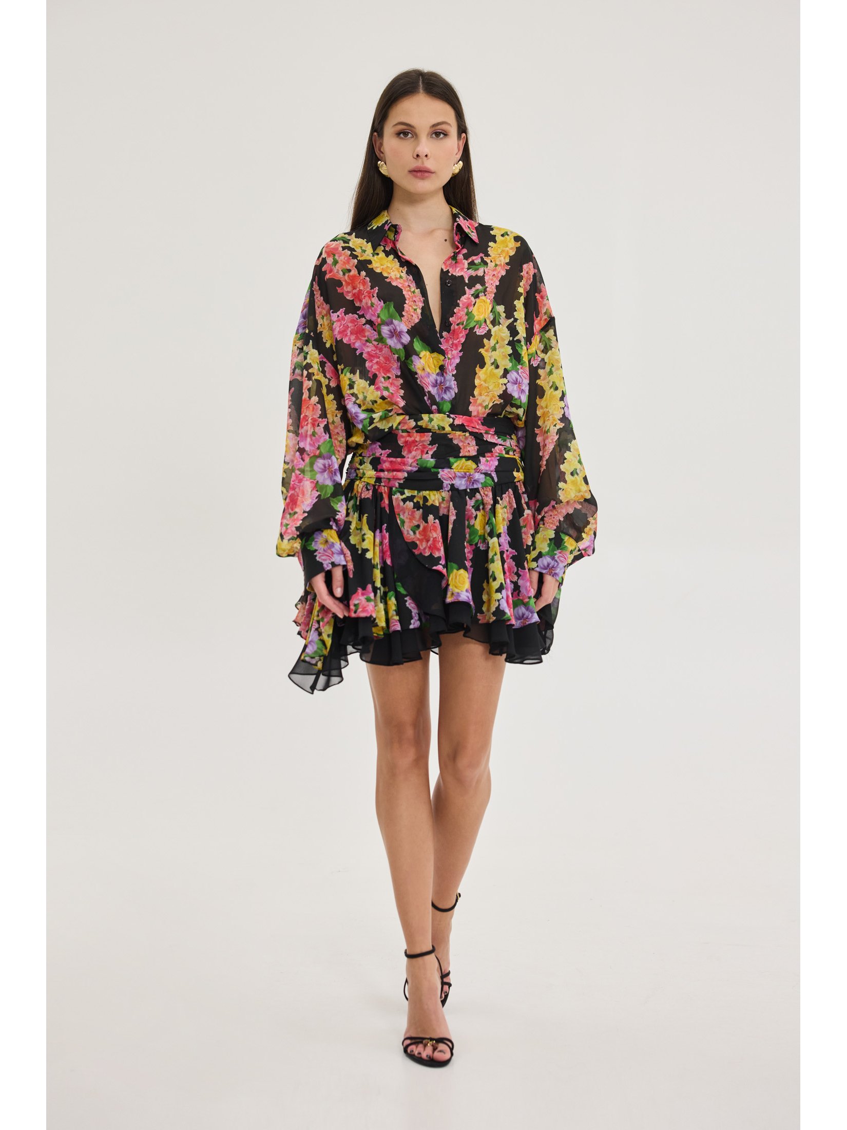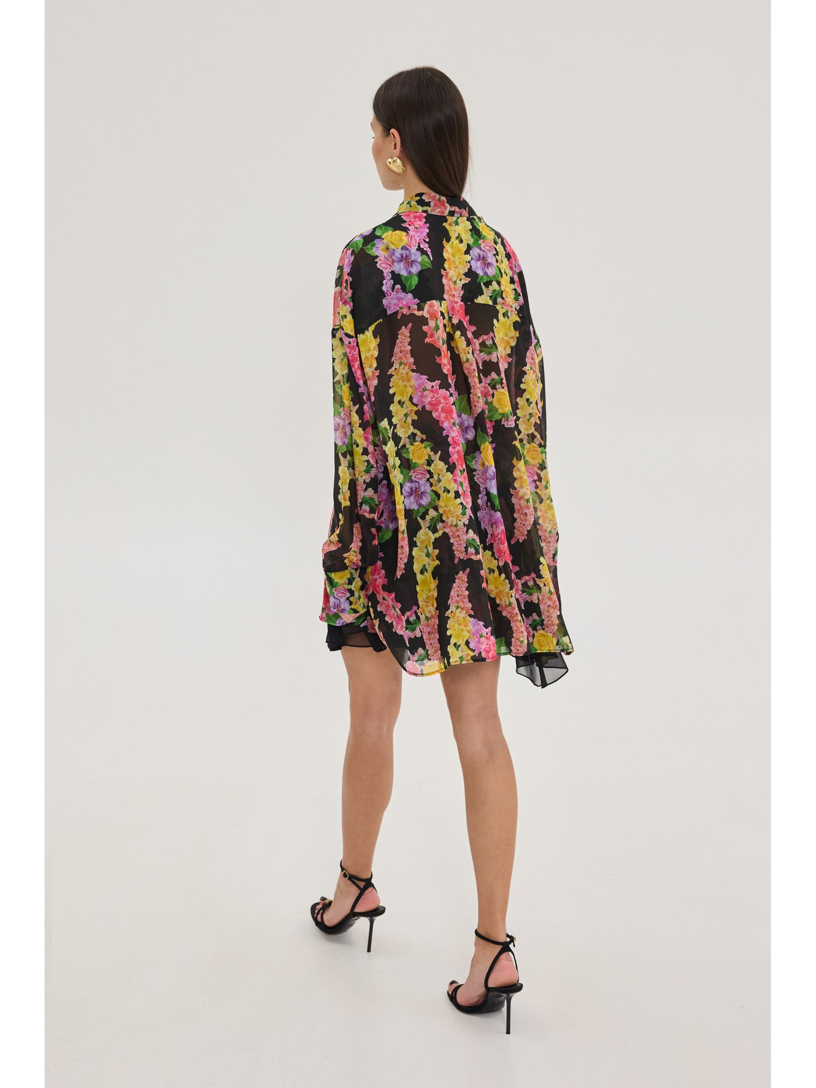Oversized πουκάμισο με pattern λουλούδια σε μαύρο φόντο από την Hemithea. Αέρινο και μακρύ για να ταιριάζει σε όλους τους σωματότυπους. Κουμπώνει μπροστά με κουμπιά. Oversized μανίκια με δύο κουμπιά στη μανσέτα. Άνοιγμα στο πλάι για εύκολο fit. Ελαφριά σούρα στην πλάτη. Μικρός γιακάς. Το μοντέλο είναι 1,75m και φοράει OS. Σύνθεση: 100% REC PL