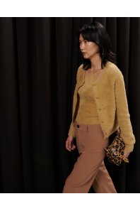 Καμηλό μάλλινη χνουδωτή μπλούζα με τιράντες από την Milkwhite. Ελαστικό ύφασμα.