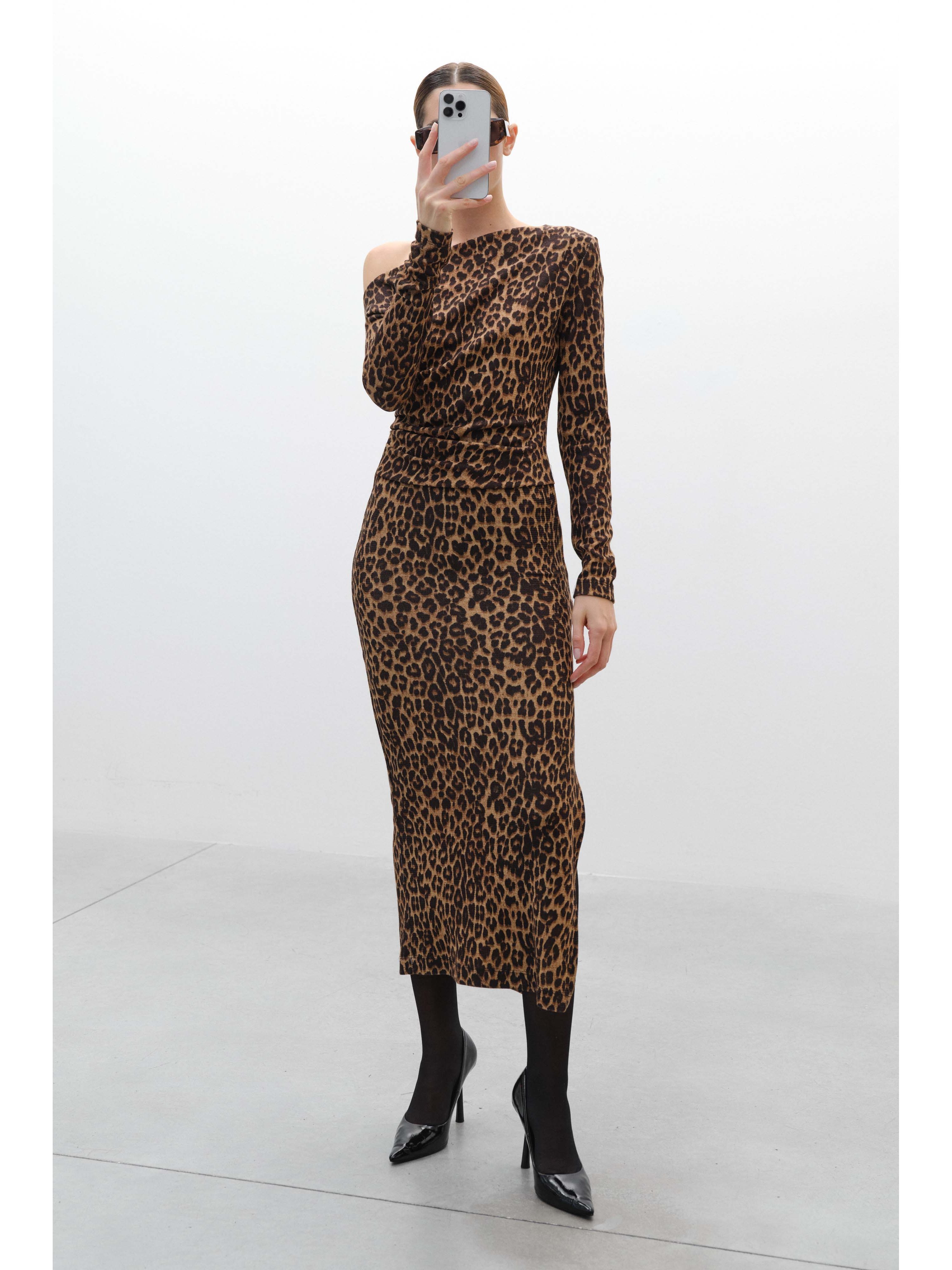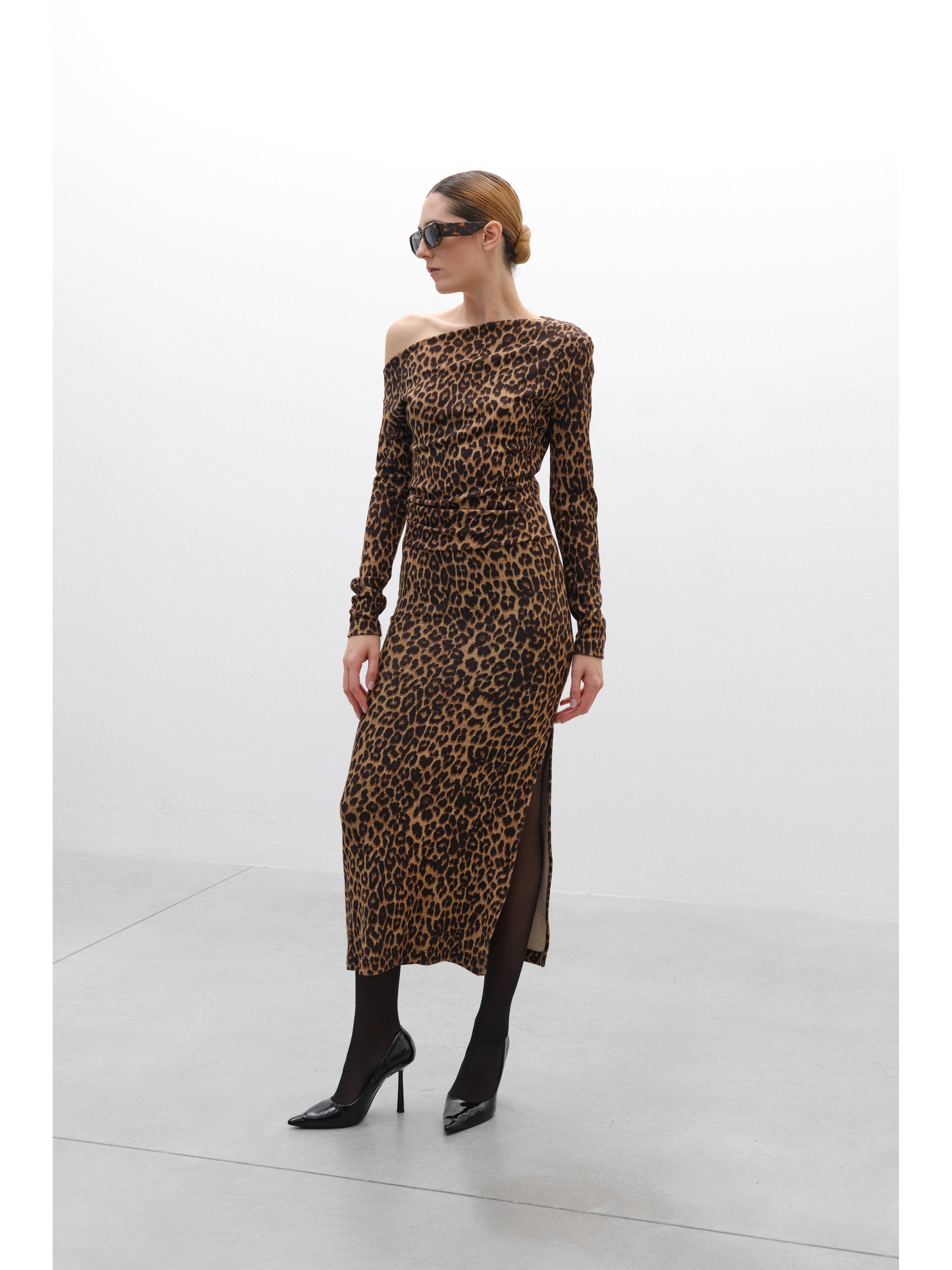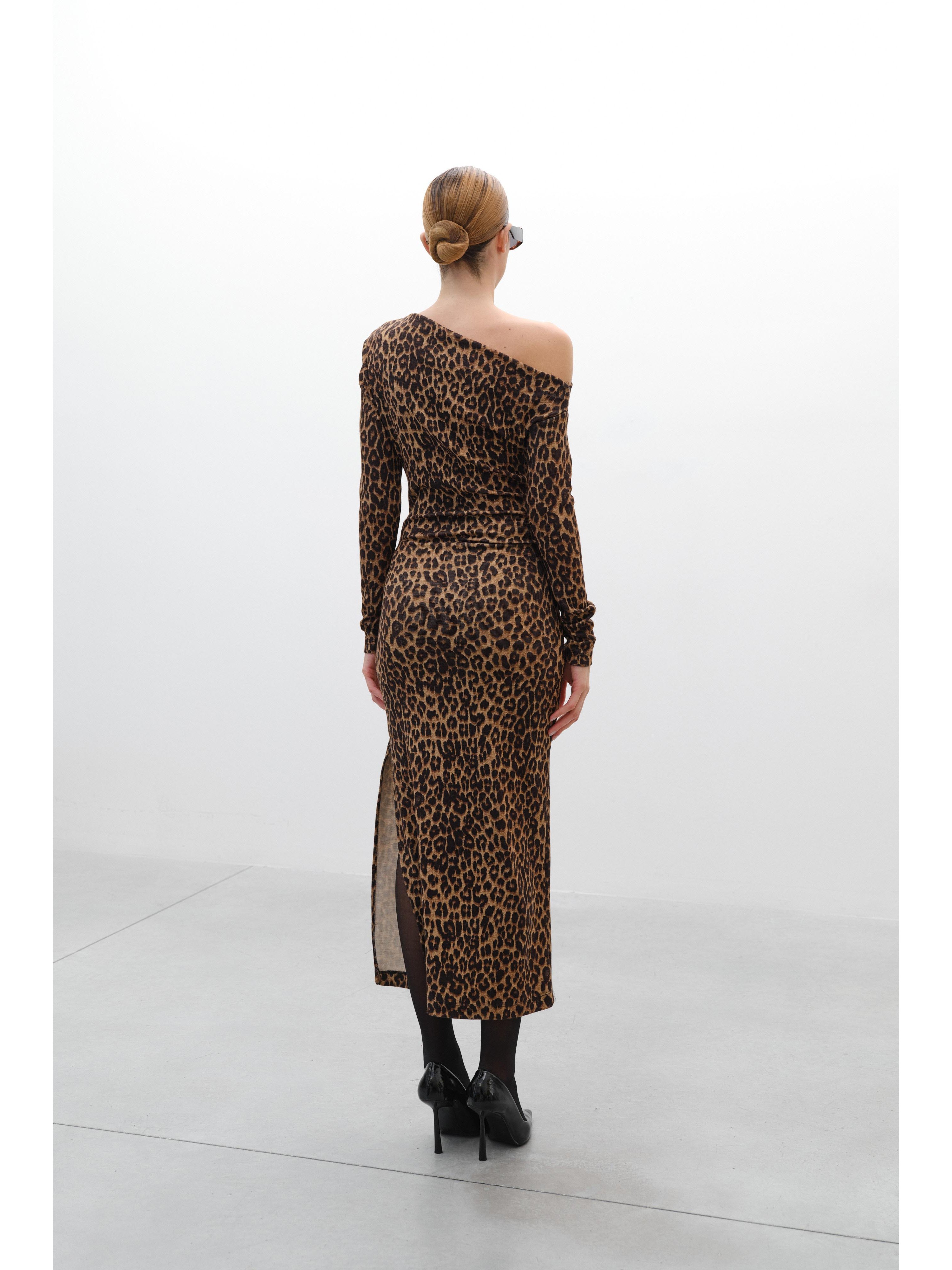 Φόρεμα λεοπάρ με έναν ώμο Lumina