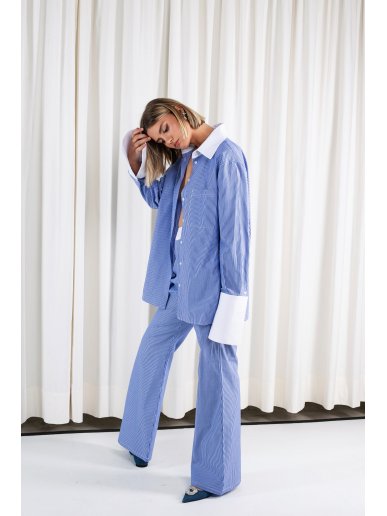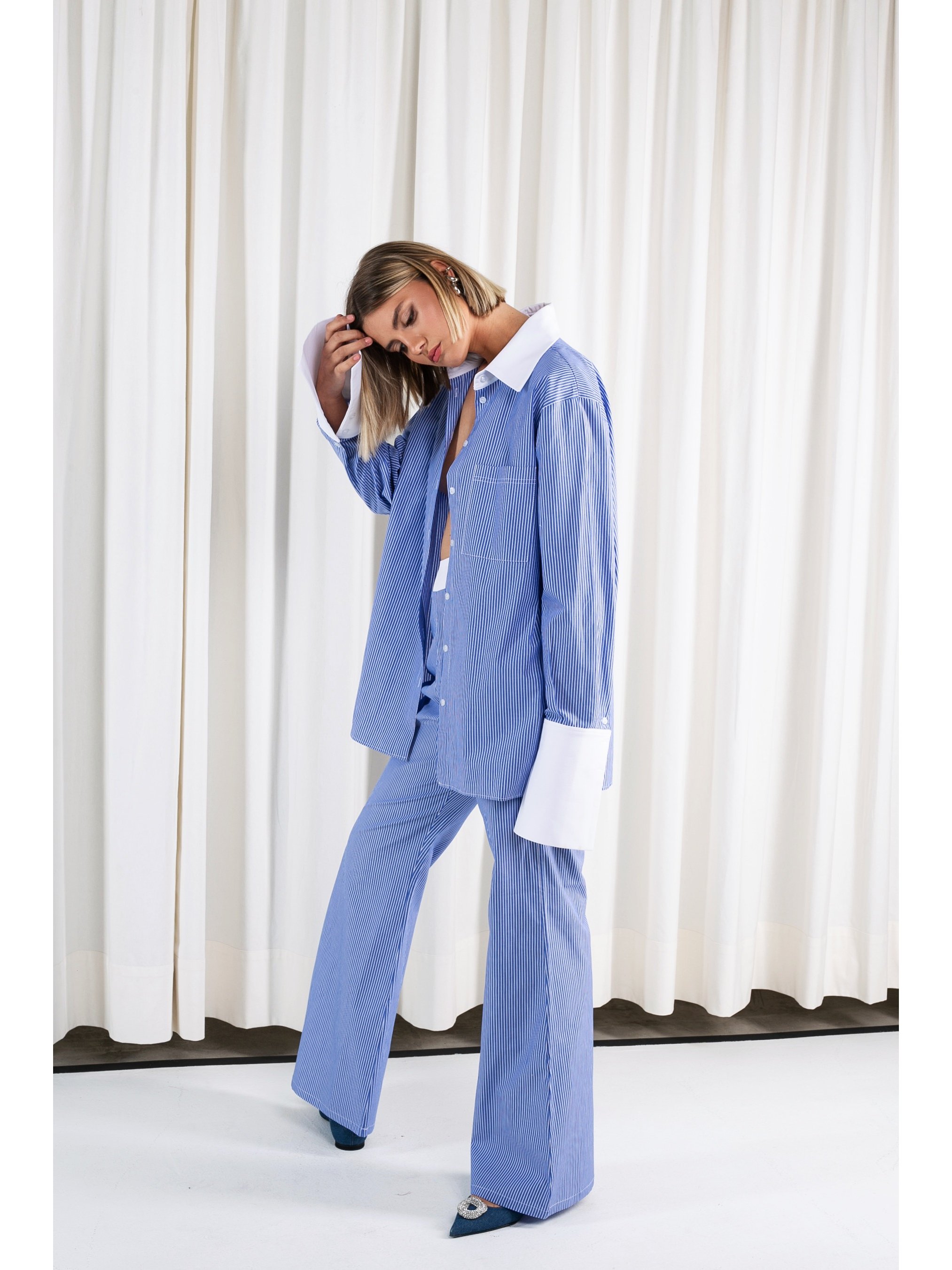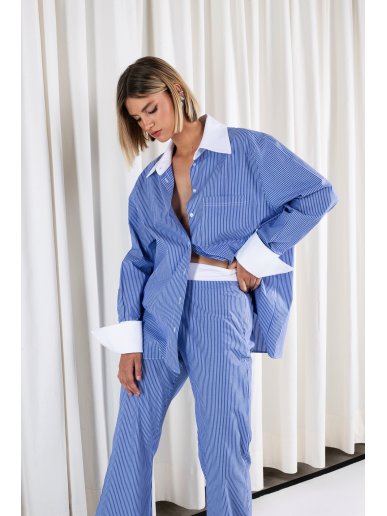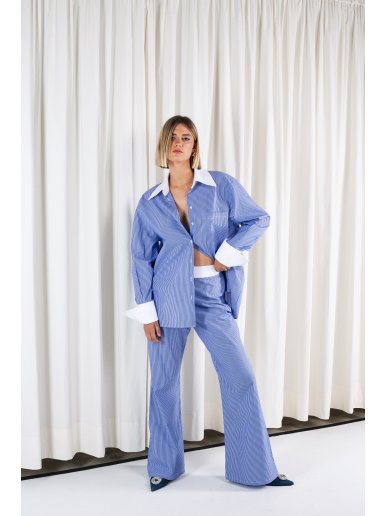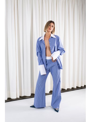 Ριγέ παντελόνι από την Ciel Concept. Λάστιχο στην μέση και λευκή λεπτομέρεια. Κλείνει στο πλάι με φερμουάρ. Ίσια γραμμή. Σύνθεση: 100% Βαμβάκι. Κατασκευάζεται εξολοκλήρου στην Ελλάδα σε περιορισμένη διαθεσιμότητα αποκλειστικά για την CIEL CONCEPT.