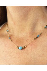 Κολιέ με τιρκουάζ και χρυσές χάντρες. Μήκος 42cm