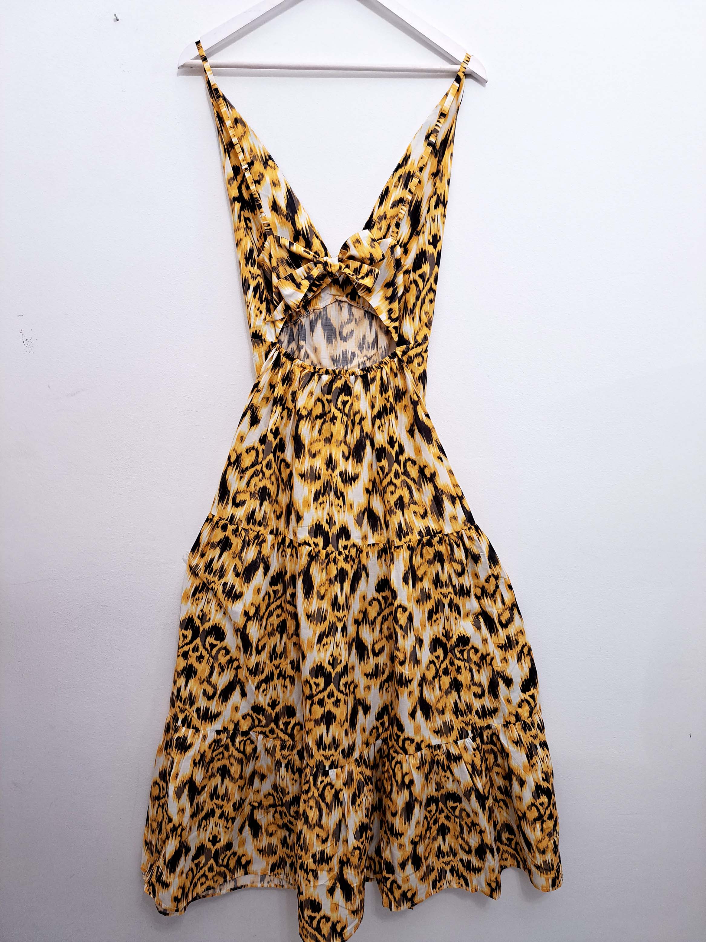 Κίτρινο εμπριμέ φόρεμα Nisω