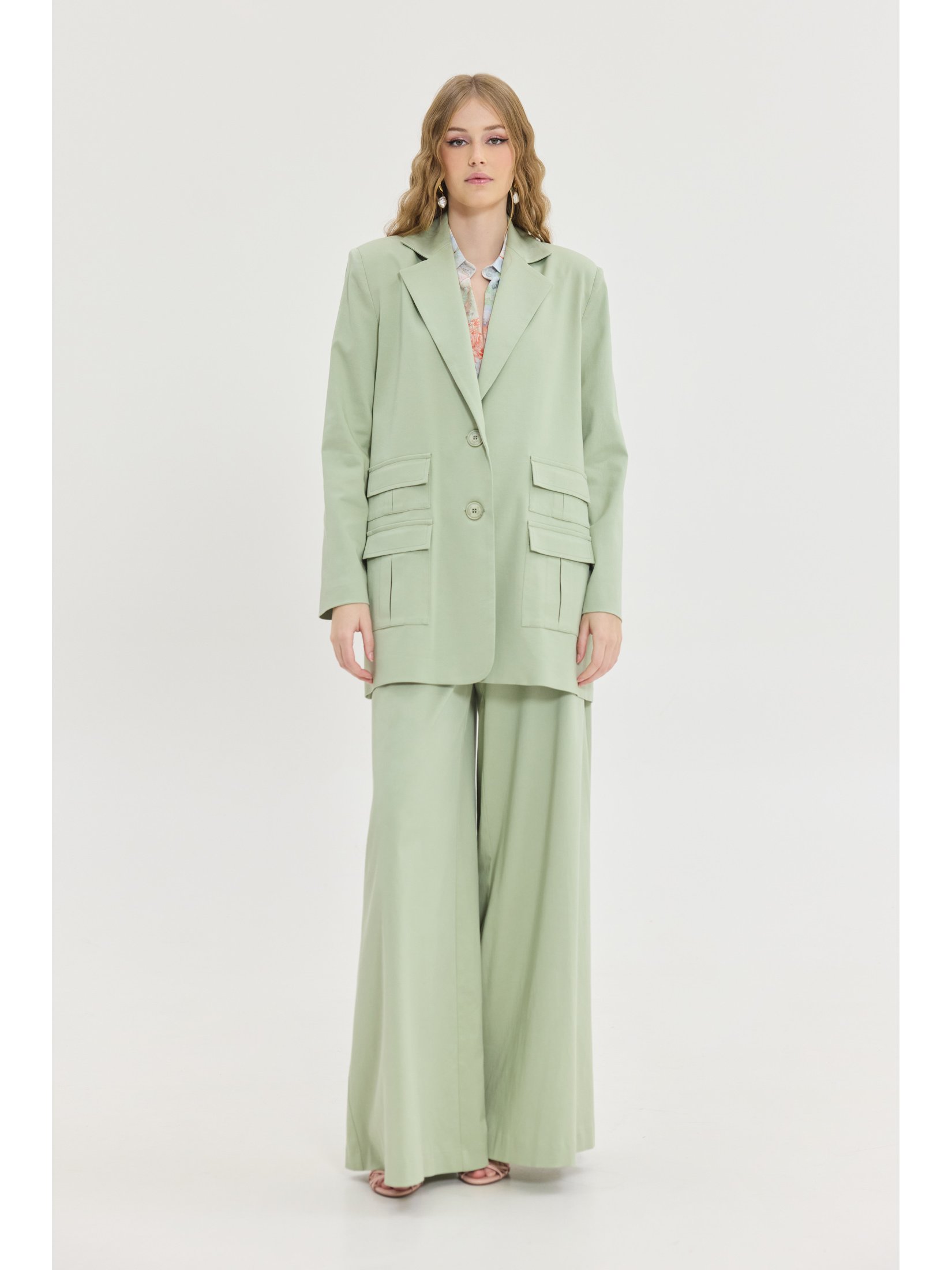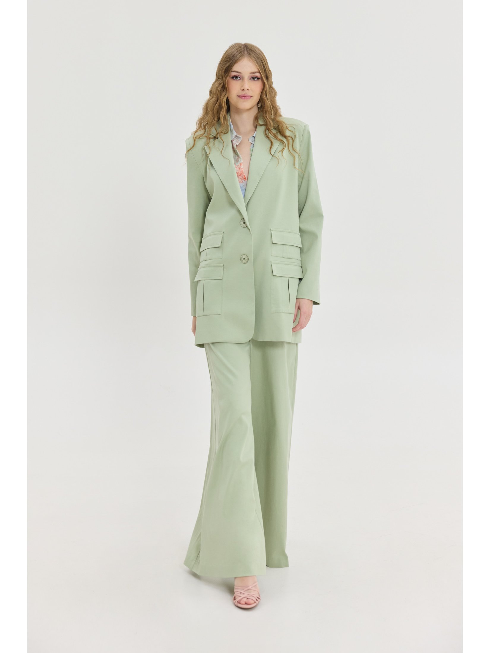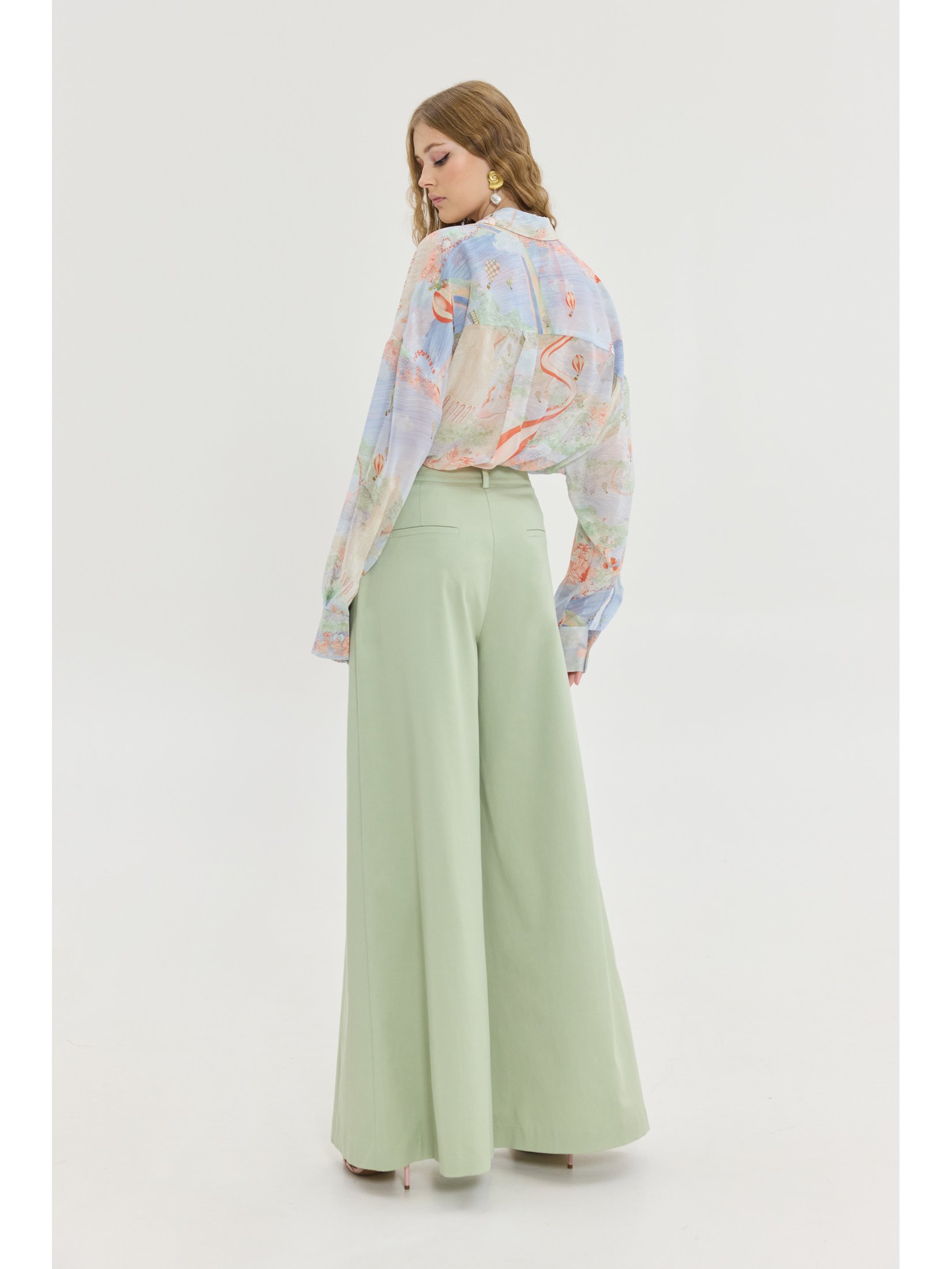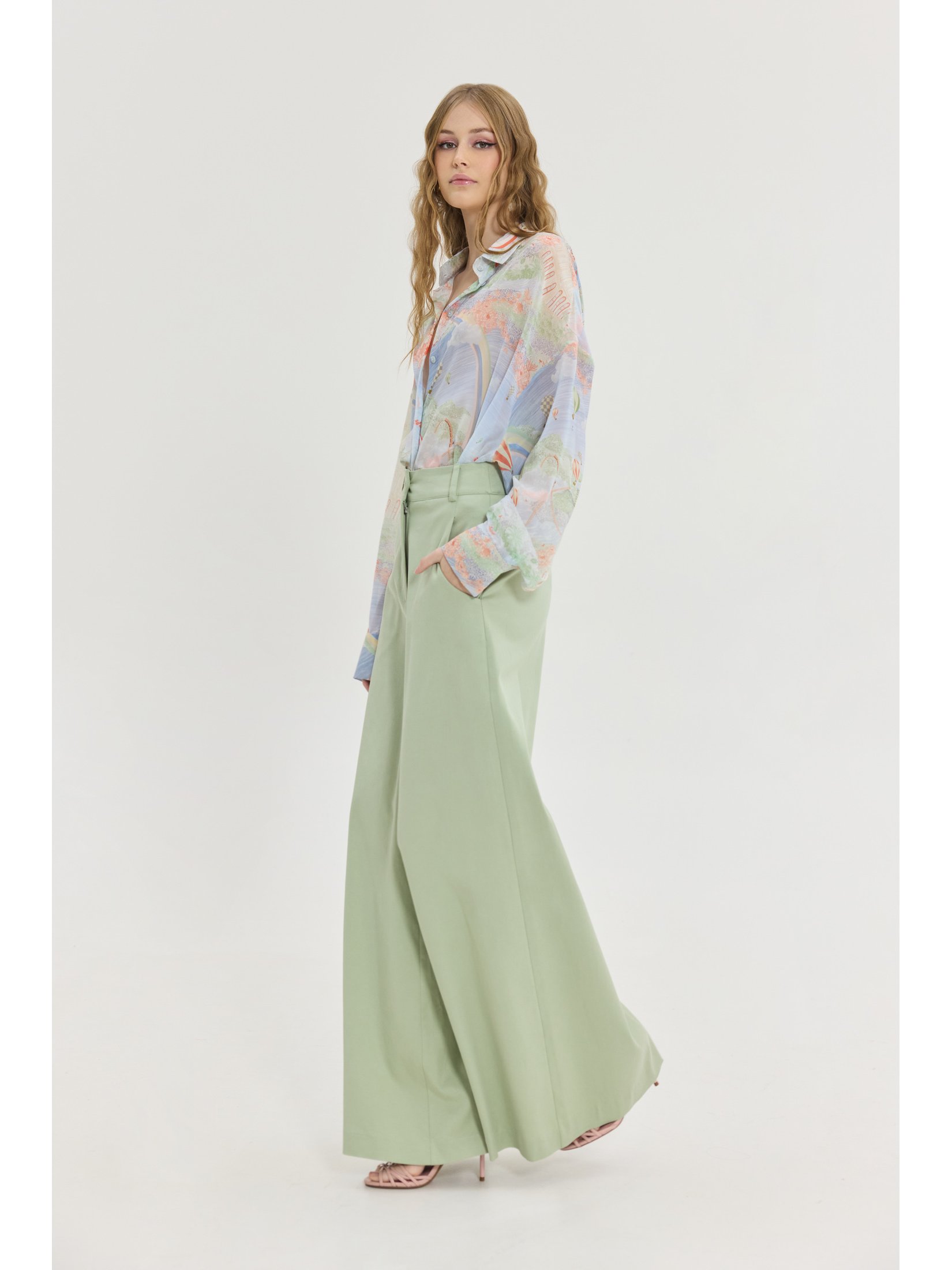Ψηλόμεσο παντελόνι super wide leg από την Hemithea. Μονόχρωμο στο χρώμα της μέντας. 70's vibes. Ψηλόμεση γραμμή που κολακεύει την σιλουέτα. Κλείσιμο με χρυσαφί μεταλλικό κουμπί με λογότυπο και φερμουάρ. Διακοσμητικές τσέπες στο πίσω μέρος. Denim ελαφρύ ύφασμα. Σύνθεση: 55%CLY 45% CO 2%SP  Το μοντέλο είναι 1,75m και φοράει Small.