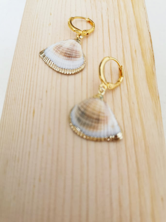Κρεμαστά σκουλαρίκια με κοχύλια. Ορείχαλκος. Υποαλλεργικό.