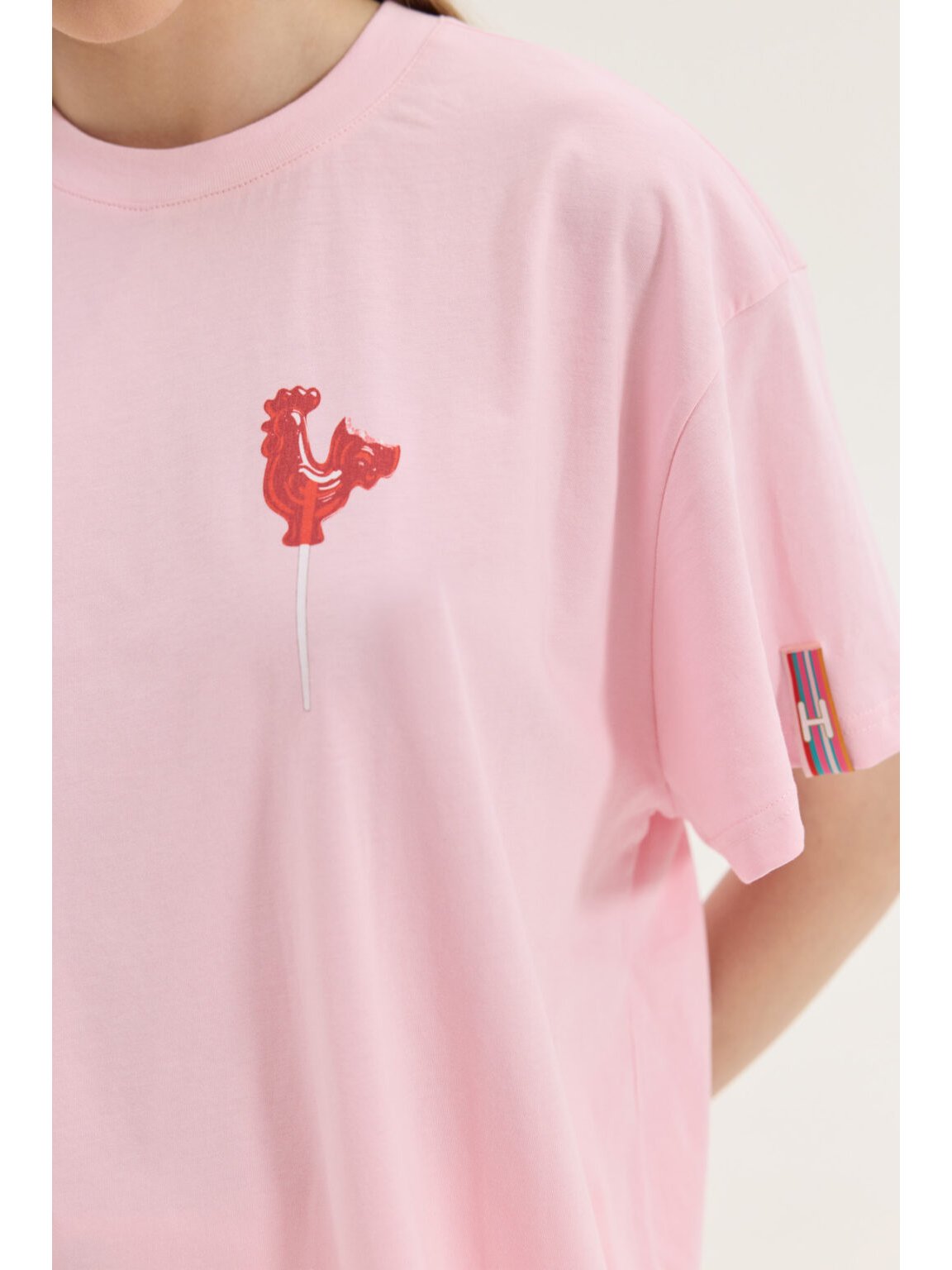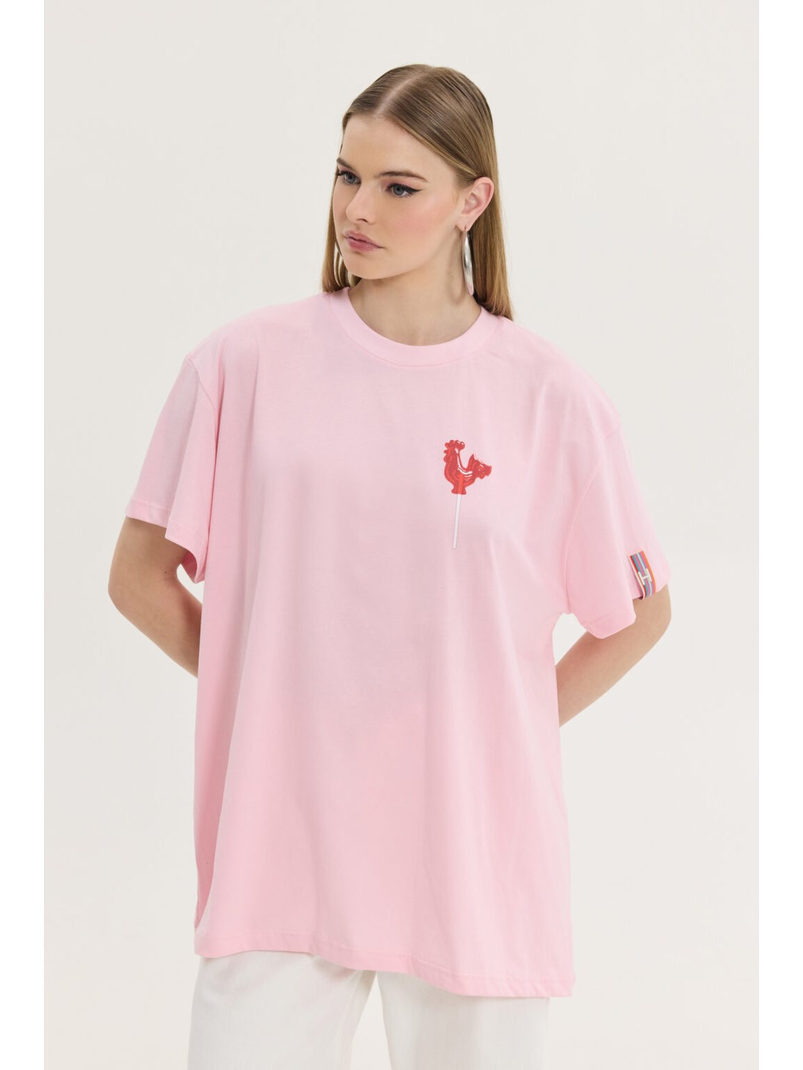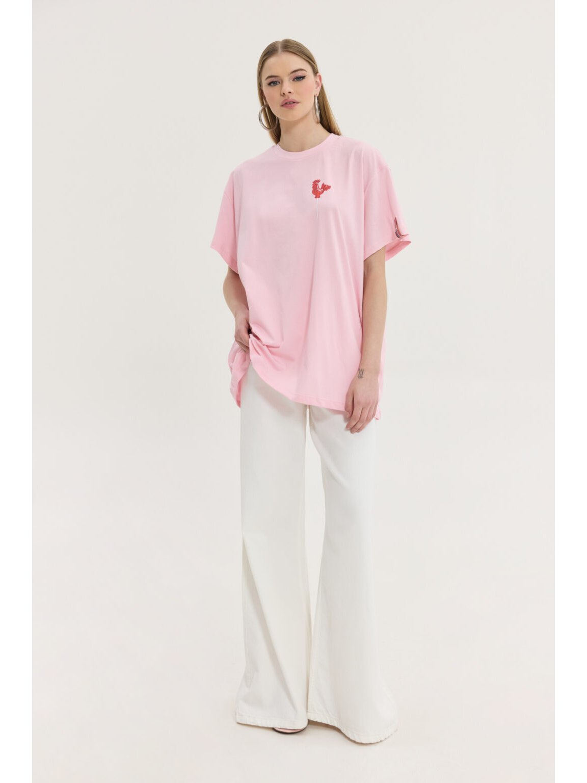 Oversized t-shirt σε μονόχρωμο λευκό χρώμα και στάμπα γλυφιτζούρι κοκοράκι στο πίσω μέρος από την Hemithea. Στάμπα με  logo στο μπροστινό μέρος. Boxy και long fit. Μανίκι oversized μέχρι τον αγκώνα. Λαιμόκοψη. Extra υφαντό ταμπάκι. Το μοντέλο είναι 1,75m και φοράει OS. Σύνθεση: 100% Βαμβάκι.