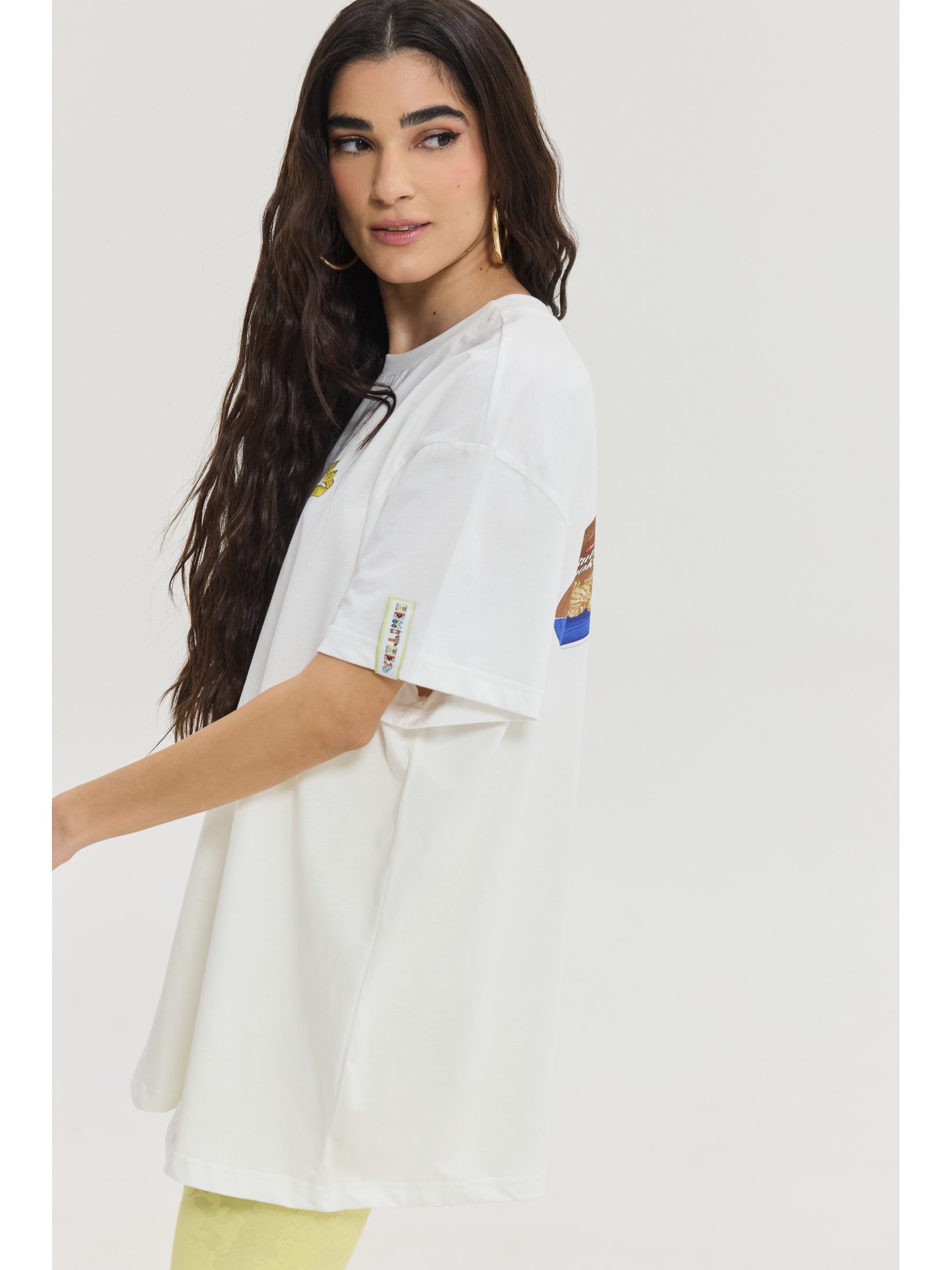Oversized t-shirt σε μονόχρωμο λευκό χρώμα και στάμπα κουτί με ραφτικά της μαμάς στο πίσω μέρος από την Hemithea. Στάμπα μεζούρα και logo στο μπροστινό μέρος. Boxy και long fit. Μανίκι oversized μέχρι τον αγκώνα. Λαιμόκοψη. Extra υφαντό ταμπάκι. Το μοντέλο είναι 1,75m και φοράει OS. Σύνθεση: 100% Βαμβάκι.
