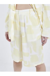 Κίτρινη βερμούδα με λευκά abstract σχέδια από την Glamorous. Μήκος πάνω από το γόνατο. Πλαινές τσέπες. Κλείνει μπροστά με κόπιτσα και φερμουάρ.