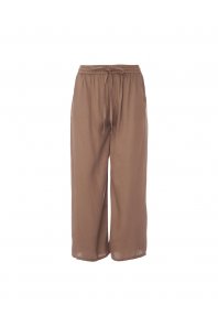 Καφέ παντελόνι με λάστιχο στην μέση από την Nisω. Τσέπες στο πλάι. Κανονική μέση που προσαρμόζεται με κορδόνια. Soft touch.