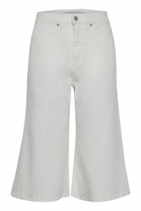 Ψηλόμεσο λευκό ντένιμ παντελόνι culotte με μπροστινές τσέπες από την Ichi. Φαρδύ και κοντό μπατζάκι. Κλείσιμο μπροστά με φερμουάρ και κουμπί.