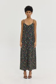 Mixi φόρεμα με λεπτές τιράντες και pattern "with the power of the moon" σε μαύρο φόντο από την Hemithea. Ανοιχτή πλάτη με στρογγυλό σχέδιο. Αυξομειωτές στις τιράντες. Wide fit. Σατέν ύφασμα. Silky touch. Perfect for every day.